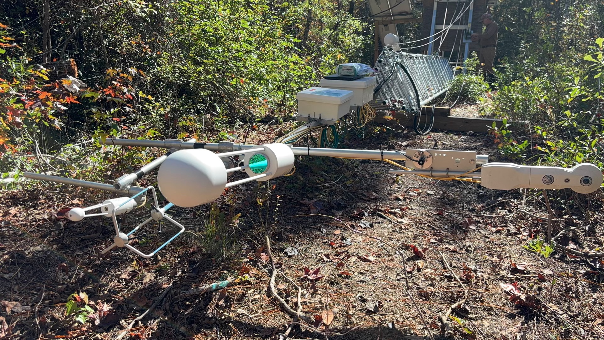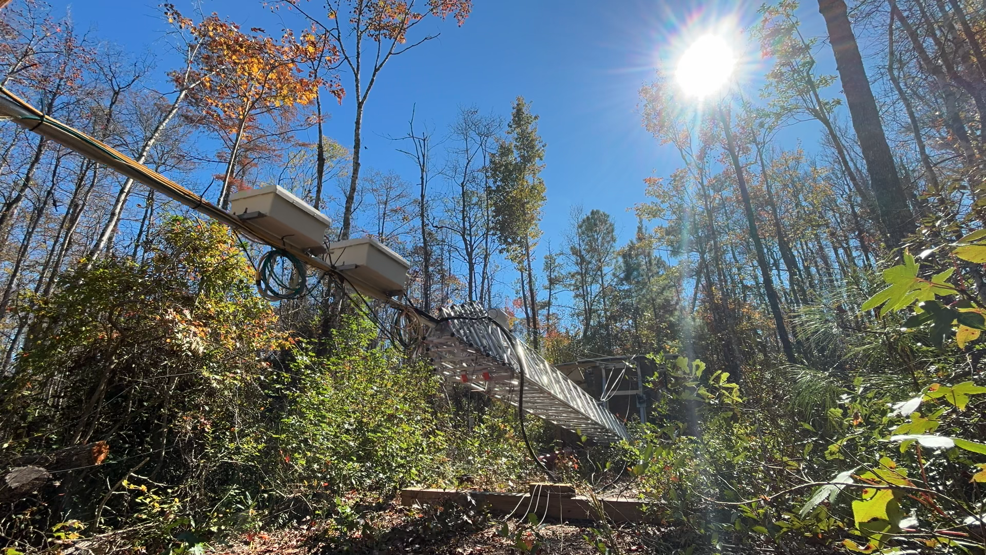 Nevertheless, ending the work at this site was never an option. With unwavering support from all involved (Ameriflux Management Project, USFWS, Duke Forest), the measurements were restored within a mile of the original tower location and with a partial footprint overlap. But this time, we decided to eliminate nearly every possible height-related risk and inconvenience. We opted for an Aluma T-100H folding telescoping tower. No more climbing or fear of heights, no more dropping tools and no more of wind carrying our voice away before it reaches the helper on the ground. Even with a lot more horseflies, instrument cleanup and maintenance go much faster now. And it can be done by a single person. In all, we liked the upside of the change so much that we also replaced our still functional 20-yr old scaffolding tower at US-NC2 with a folding and telescoping one. Although not flawless, we are glad to have transitioned both sites to this design, and recommend that other sites in need of a new tower consider this option, as the logistics have been greatly simplified, and the safety risks have been largely eliminated. (No, we are not getting a commission on the sale of these towers. We just want to share our joy.)